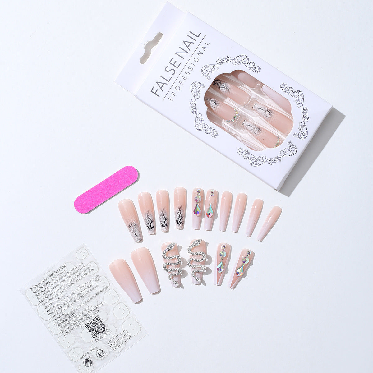 Simple French Fragment Cool Silver Snake Rhinestone Nail Beauty Finished Product